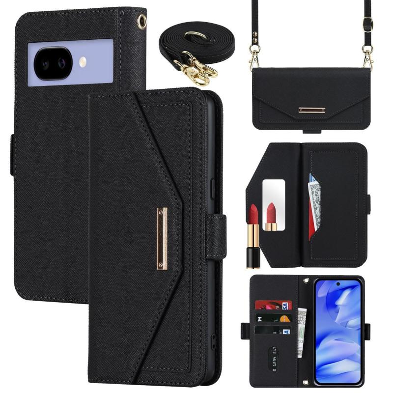 For Google Pixel 9a Cross Texture Crossbody Lanyard Leather Phone Case(Black)