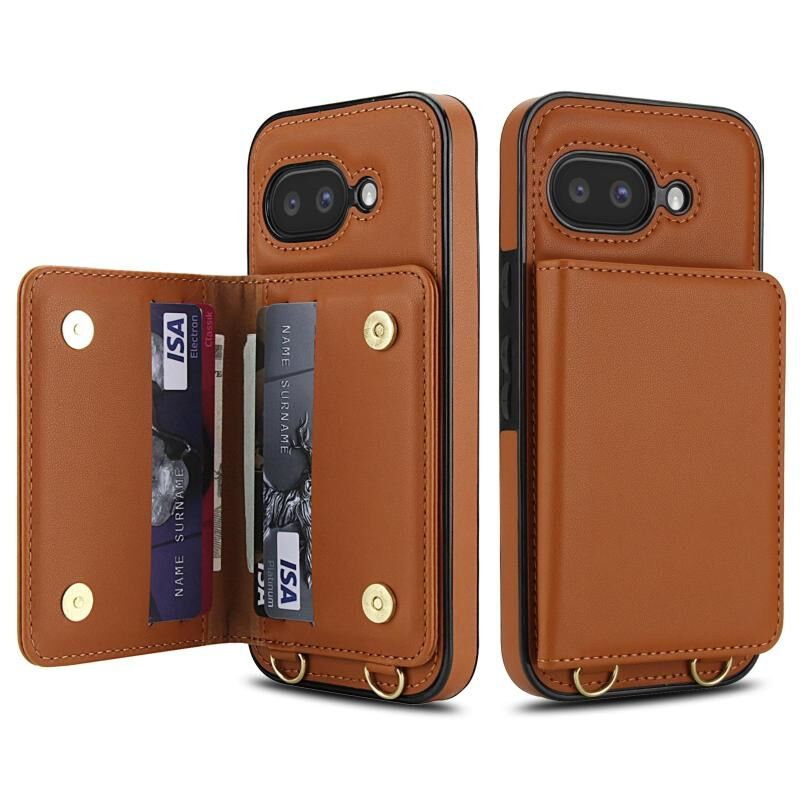 For Google Pixel 9a Crossbody Dual-buckle Wallet RFID Back Leather Phone Case(Brown)