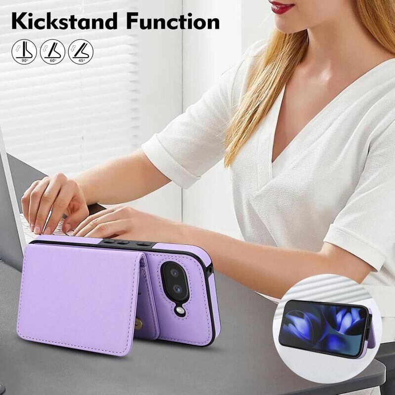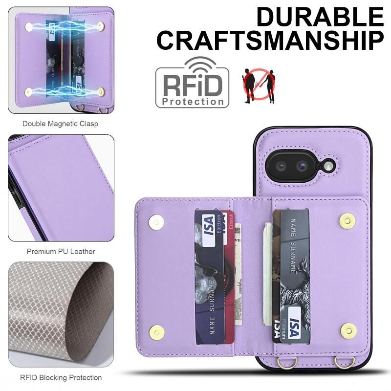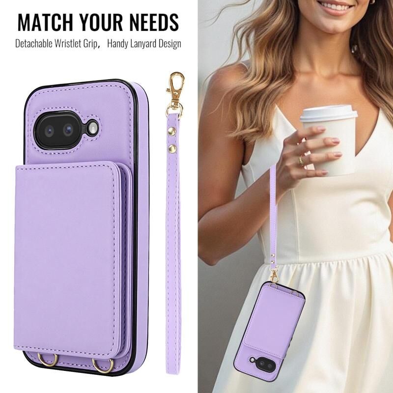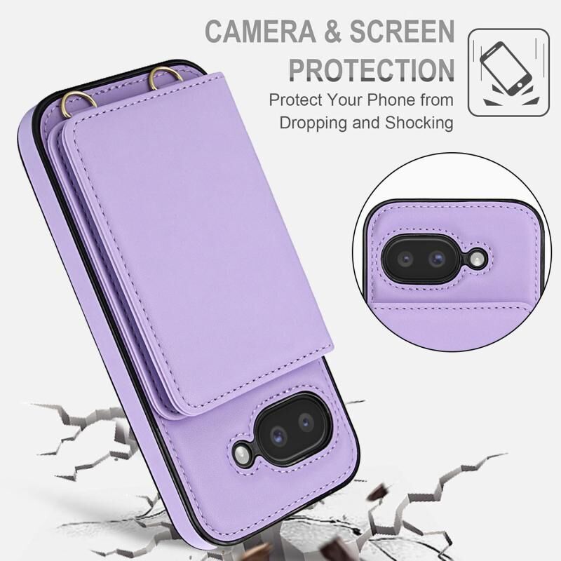 For Google Pixel 9a Crossbody Dual-buckle Wallet RFID Back Leather Phone Case(Light Purple)