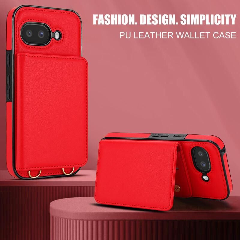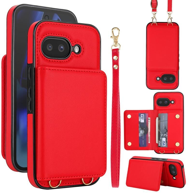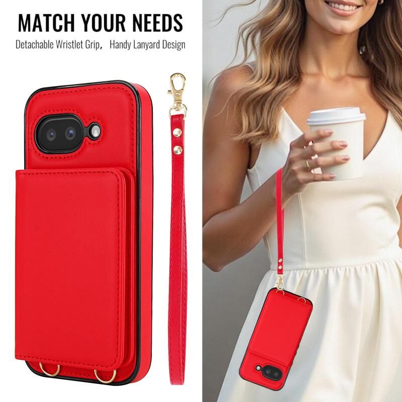 For Google Pixel 9a Crossbody Dual-buckle Wallet RFID Back Leather Phone Case(Red)