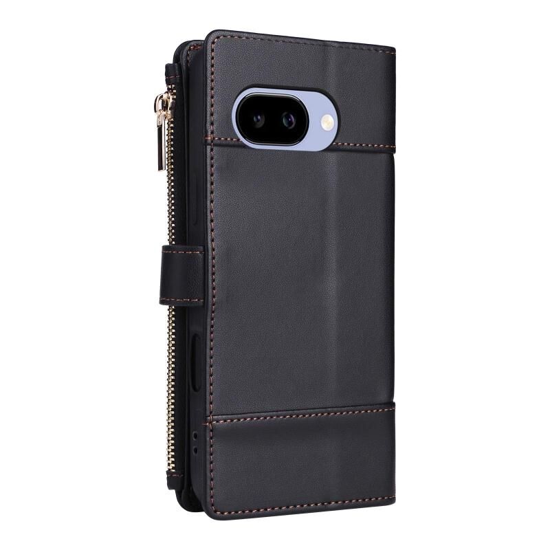 For Google Pixel 9a Crossbody Strap RFID Blocking Zipper Wallet Leather Phone Case(Black)