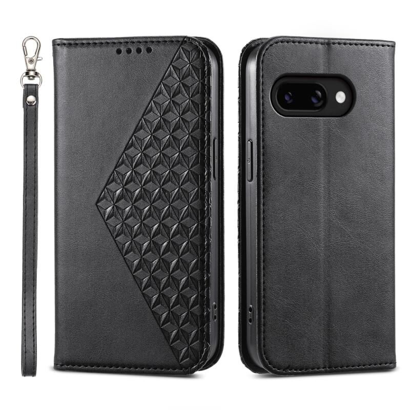 Για το Google Pixel 9a Cubic Grid Calf Texture μαγνητική θήκη τηλεφώνου από δέρμα (μαύρο)