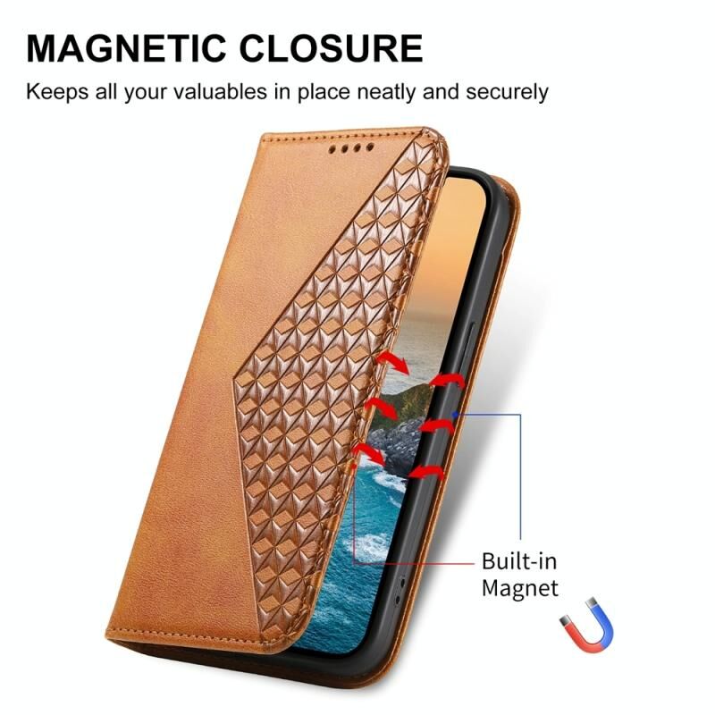 Για το Google Pixel 9a Cubic Grid Calf Texture μαγνητική δερμάτινη θήκη τηλεφώνου (κίτρινο)