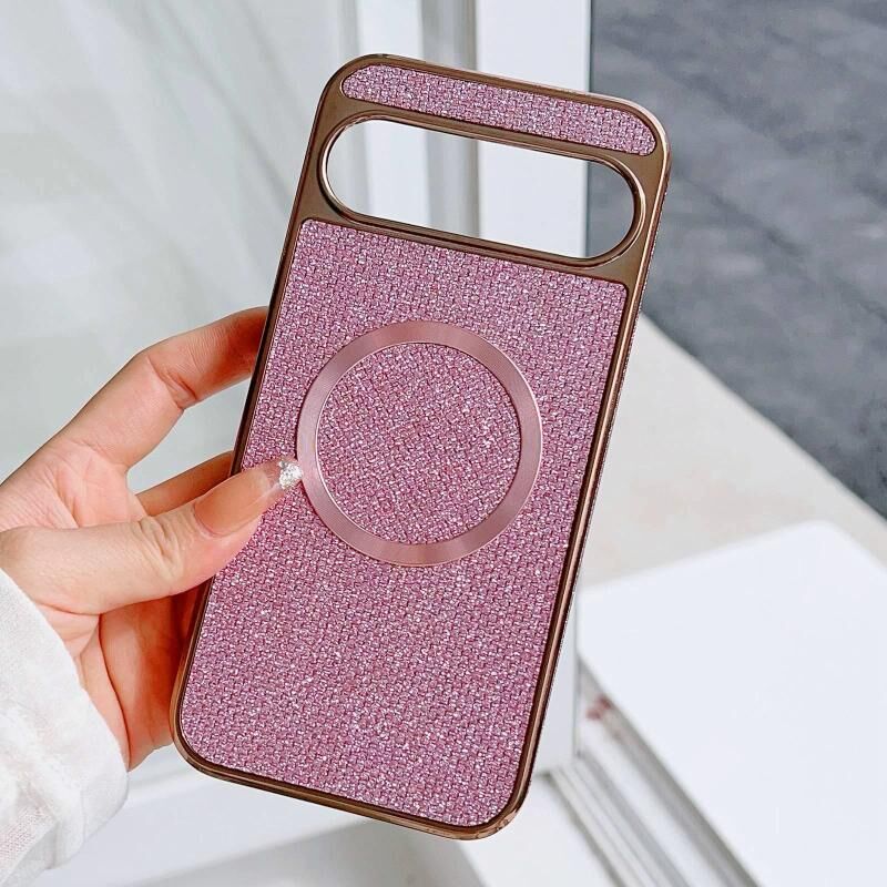 For Google Pixel 9a Electroplating PC Glitter Grain MagSafe Phone Case(Pink)