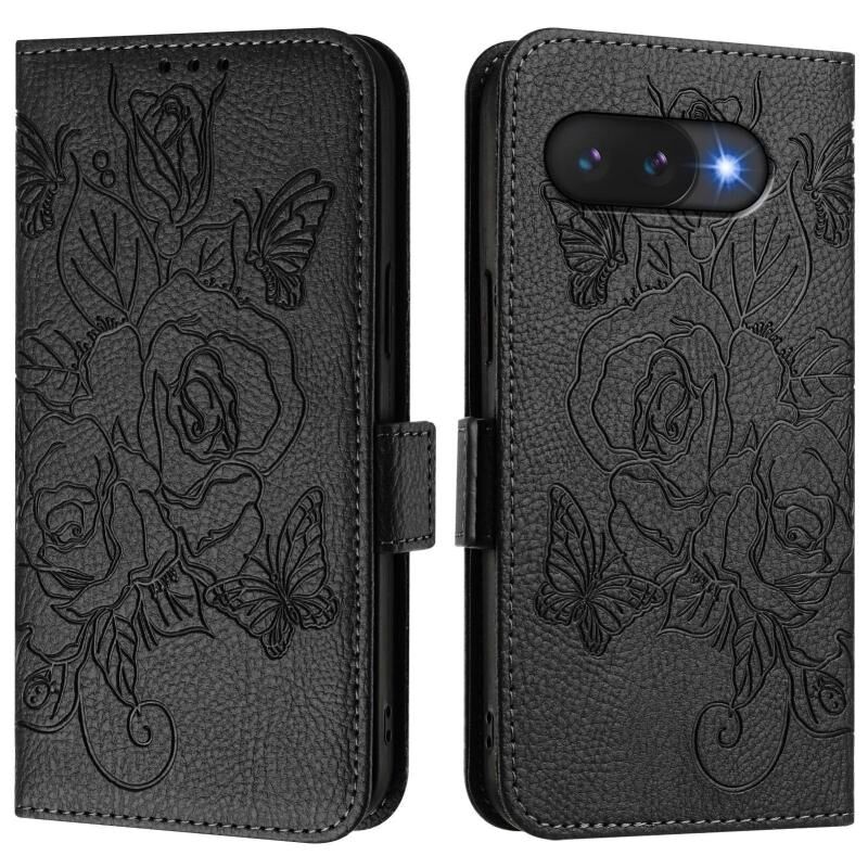 For Google Pixel 9a Embossed Rose RFID Anti-theft Leather Phone Case(Black)