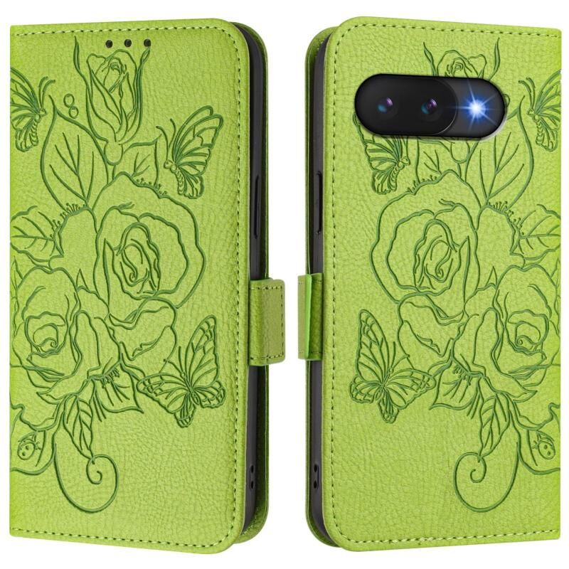 For Google Pixel 9a Embossed Rose RFID Anti-theft Leather Phone Case(Green)