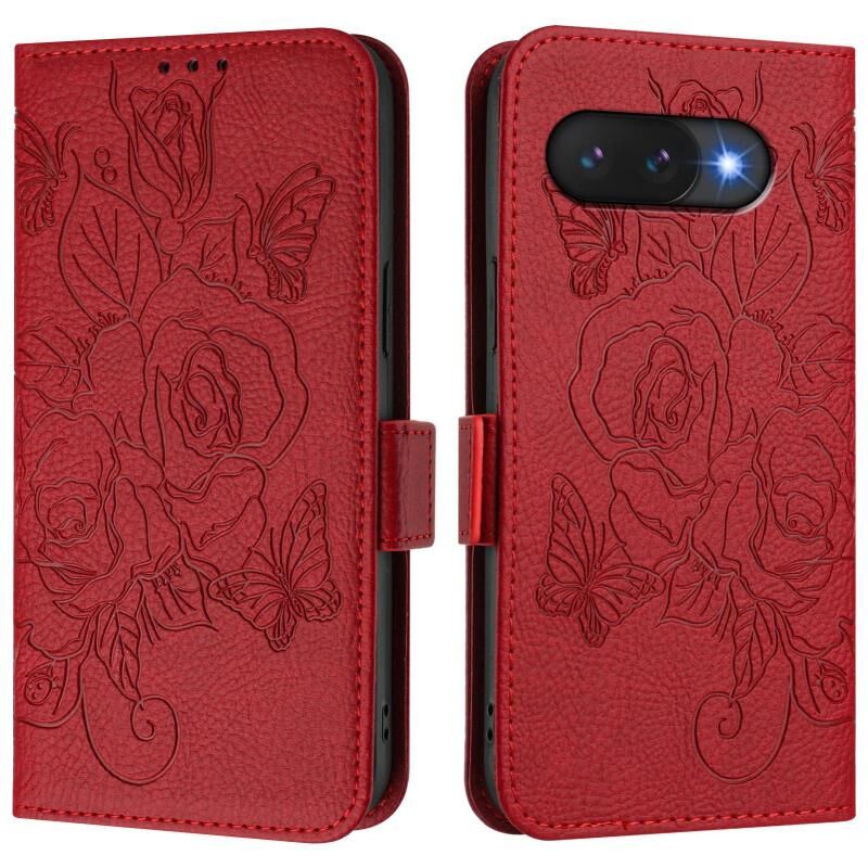 For Google Pixel 9a Embossed Rose RFID Anti-theft Leather Phone Case(Red)