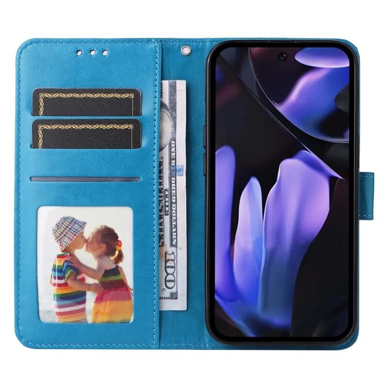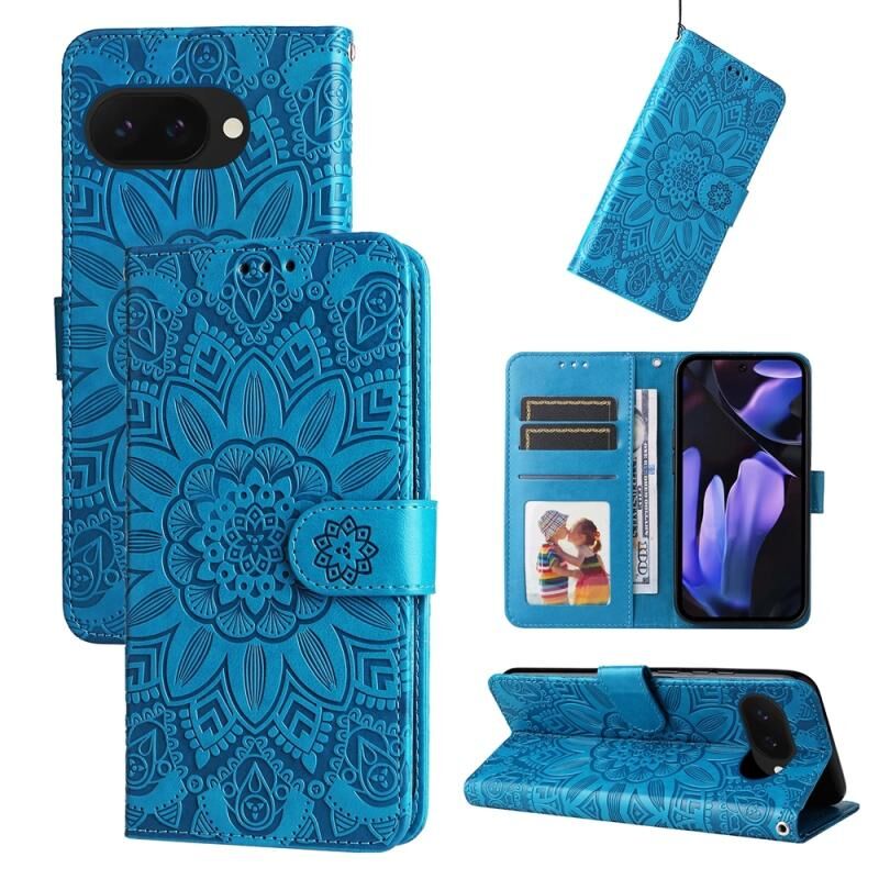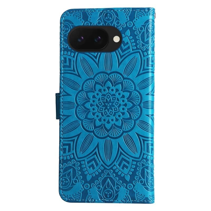 Θήκη τηλεφώνου δερμάτινη με ανάγλυφο ηλίανθο για Google Pixel 9a (Κόκκινο)