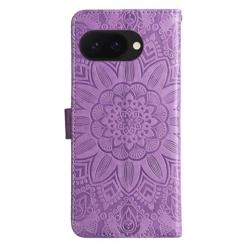 Θήκη τηλεφώνου δερμάτινη με ανάγλυφο ηλίανθο για Google Pixel 9a (Κόκκινο)