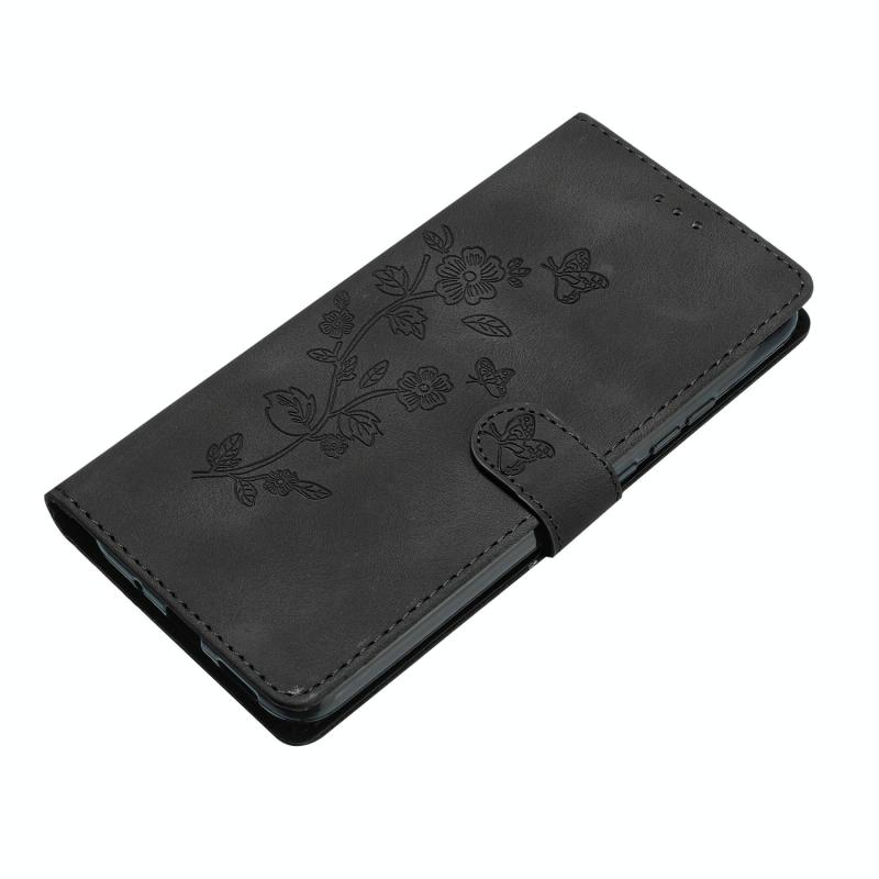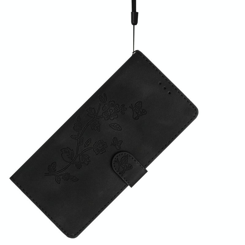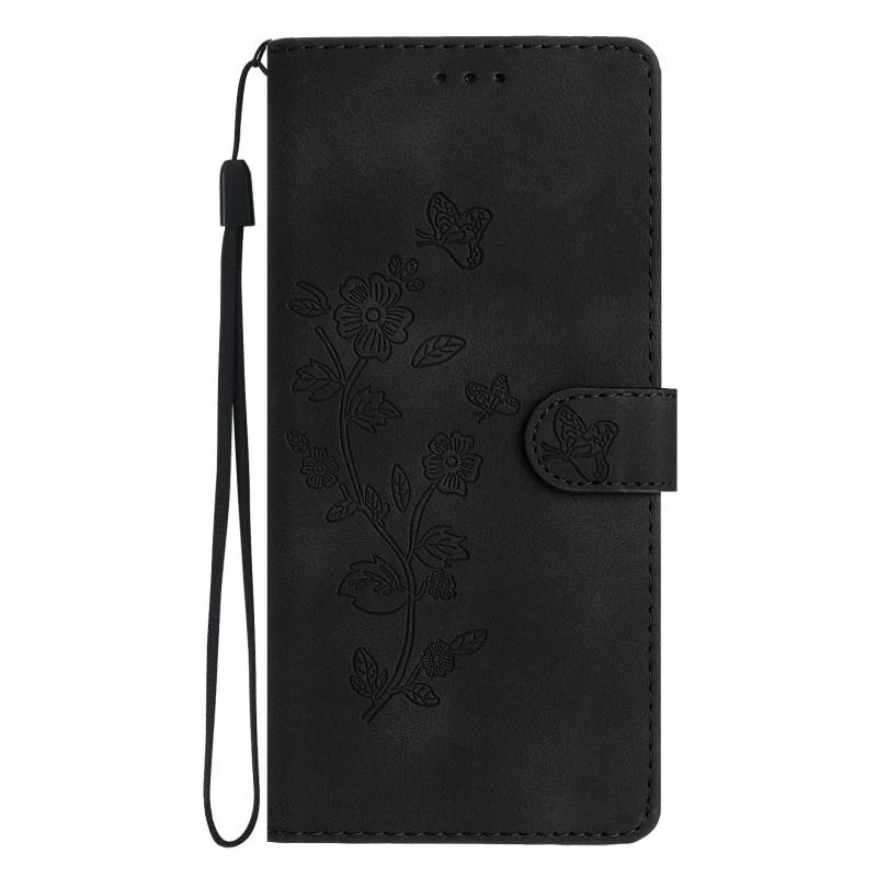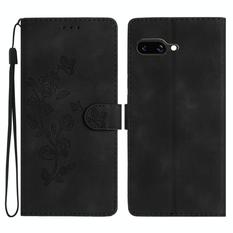 Θήκη τηλεφώνου δερμάτινη με ανάγλυφο σχέδιο λουλουδιών και πεταλούδων για Google Pixel 9a (Μαύρο)