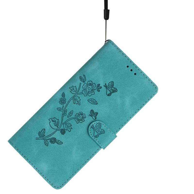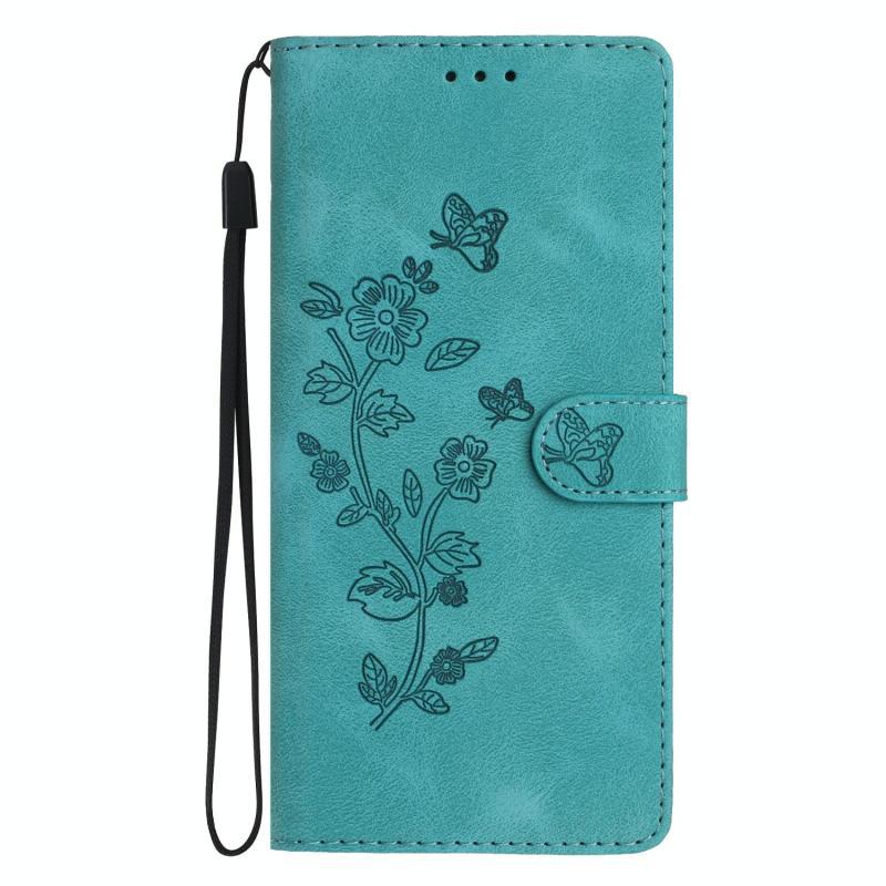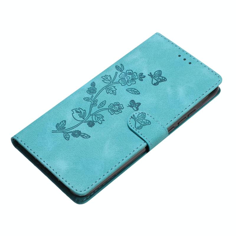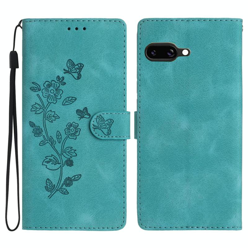 Θήκη τηλεφώνου δερμάτινη με ανάγλυφο σχέδιο λουλουδιών και πεταλούδων για Google Pixel 9a (Γαλάζιο του ουρανού)