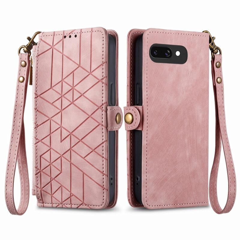 For Google Pixel 9a Geometric Zipper Wallet Side Buckle Leather Phone Case(Pink)