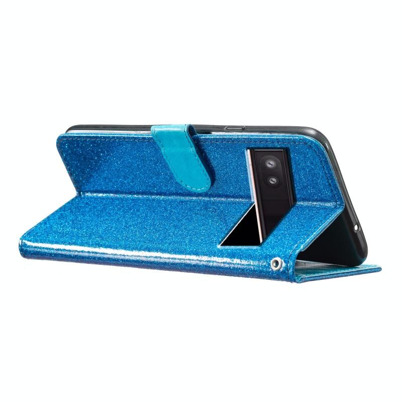 Για Google Pixel 9A Glitter Powder Flip δερμάτινη θήκη τηλεφώνου (μπλε)