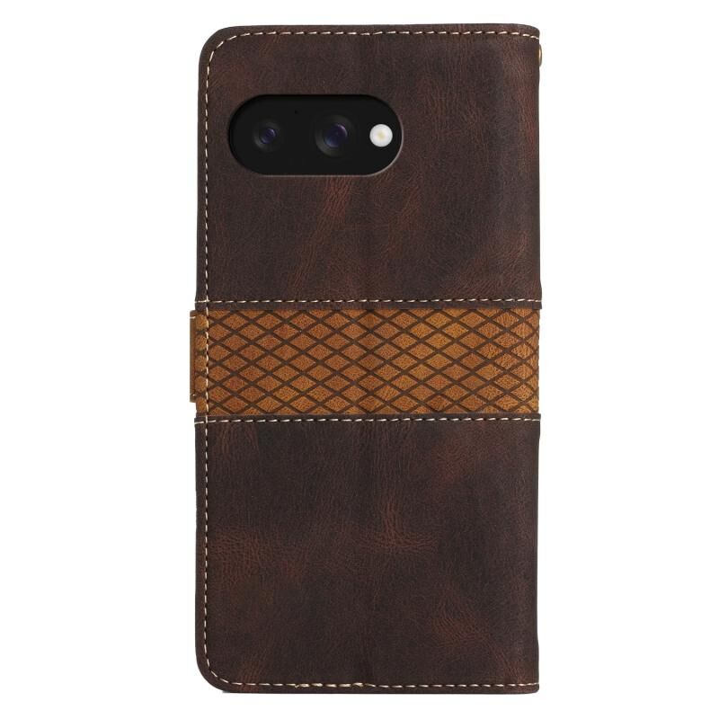 Για το Google Pixel 9a Δερμάτινη θήκη τηλεφώνου με ραφή πλέγματος και κορδόνι (καφέ)