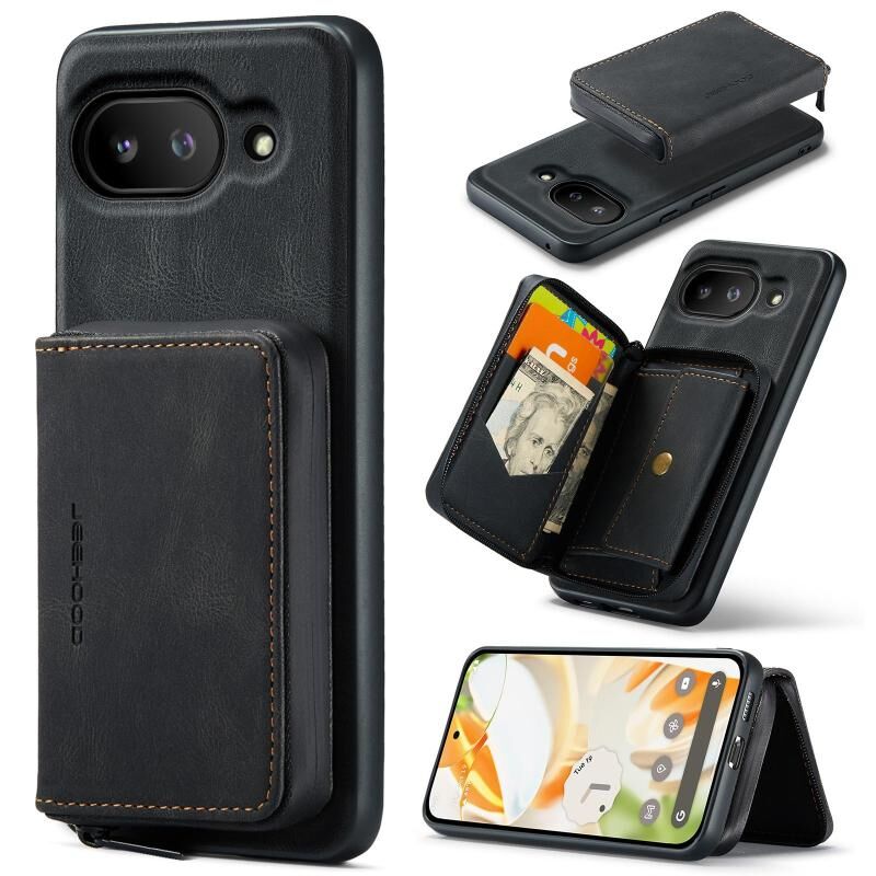 For Google Pixel 9a JEEHOOD J02 Magnetic Zipper Horizontal Flip Leather Phone Case(Black) (JEEHOOD)