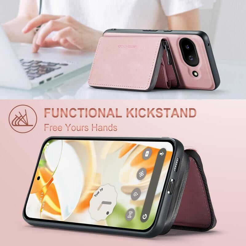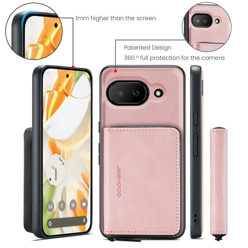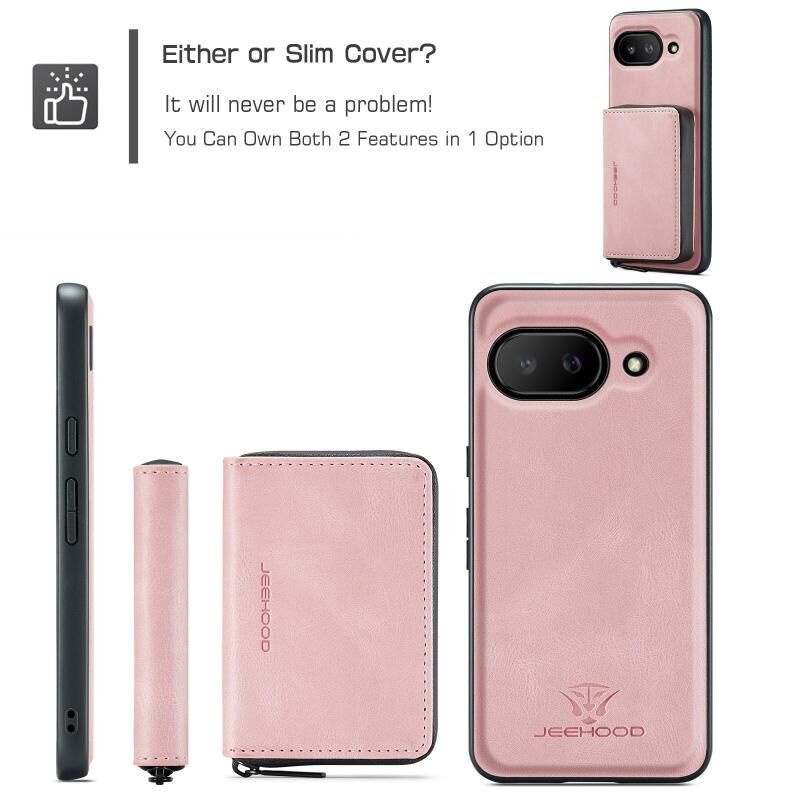 For Google Pixel 9a JEEHOOD J02 Magnetic Zipper Horizontal Flip Leather Phone Case(Pink) (JEEHOOD)