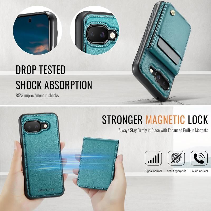 For Google Pixel 9a JEEHOOD J06 British Style RFID MagSafe Card Bag PU Phone Case(Green) (JEEHOOD)