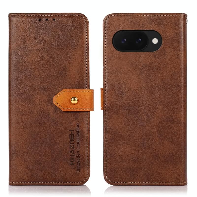 Θήκη τηλεφώνου από δέρμα με υφή δερμάτινου μοσχαριού διπλής απόχρωσης KHAZNEH για Google Pixel 9a (Καφέ)