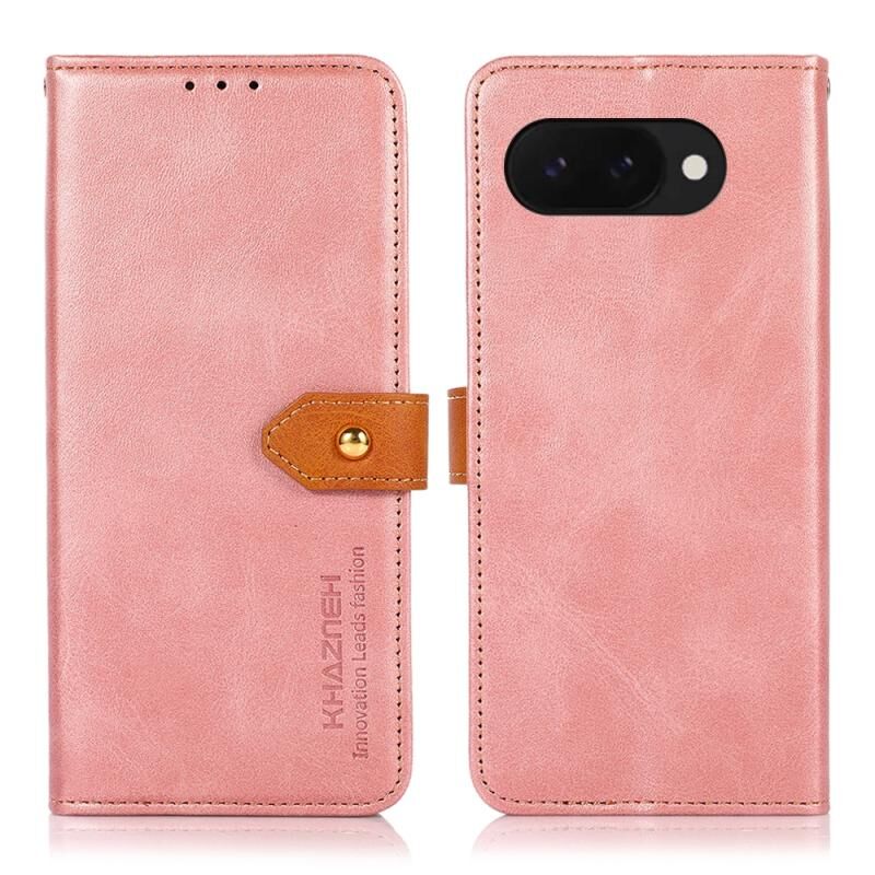 Θήκη τηλεφώνου από δέρμα με υφή δερμάτινου μοσχαριού διπλής απόχρωσης KHAZNEH για Google Pixel 9a (Καφέ)