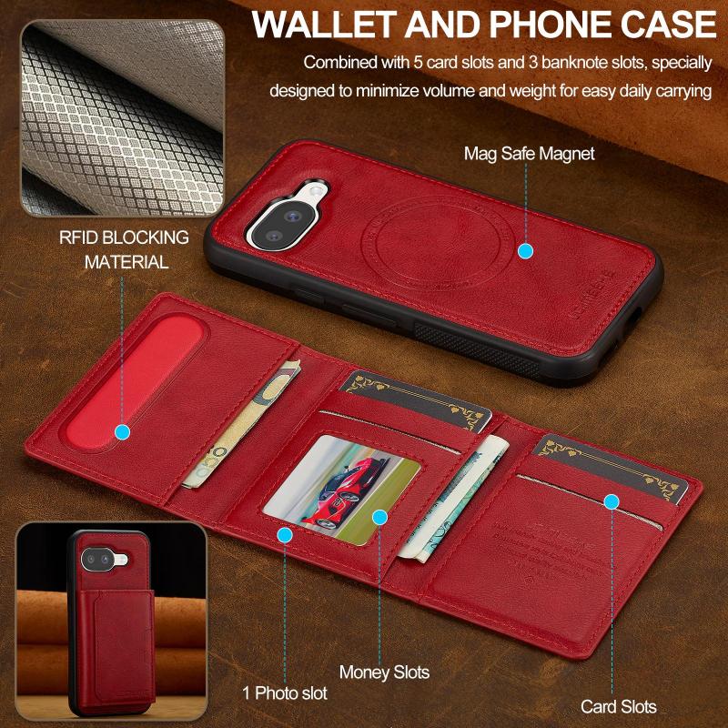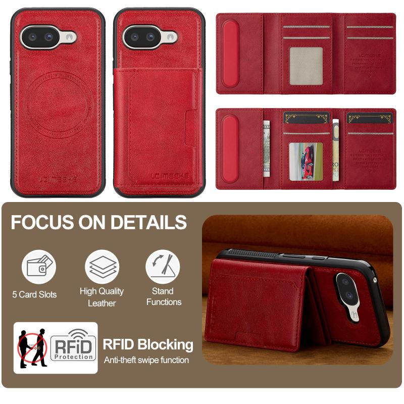 Θήκη Google Pixel 9a LC.IMEEKE L5 Series με αποσπώμενη θήκη καρτών & MagSafe (Κόκκινη)