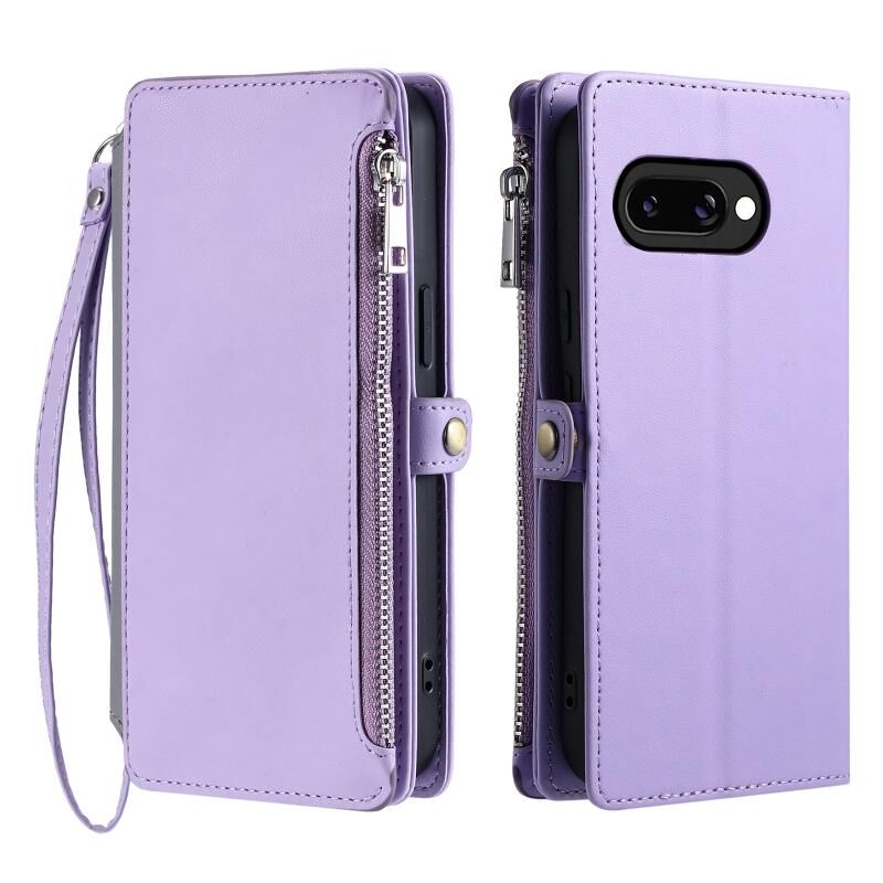 Για το Google Pixel 9a Δερμάτινη ραφή Multi-card Slot φερμουάρ υπόθεση τηλεφώνου (μωβ)