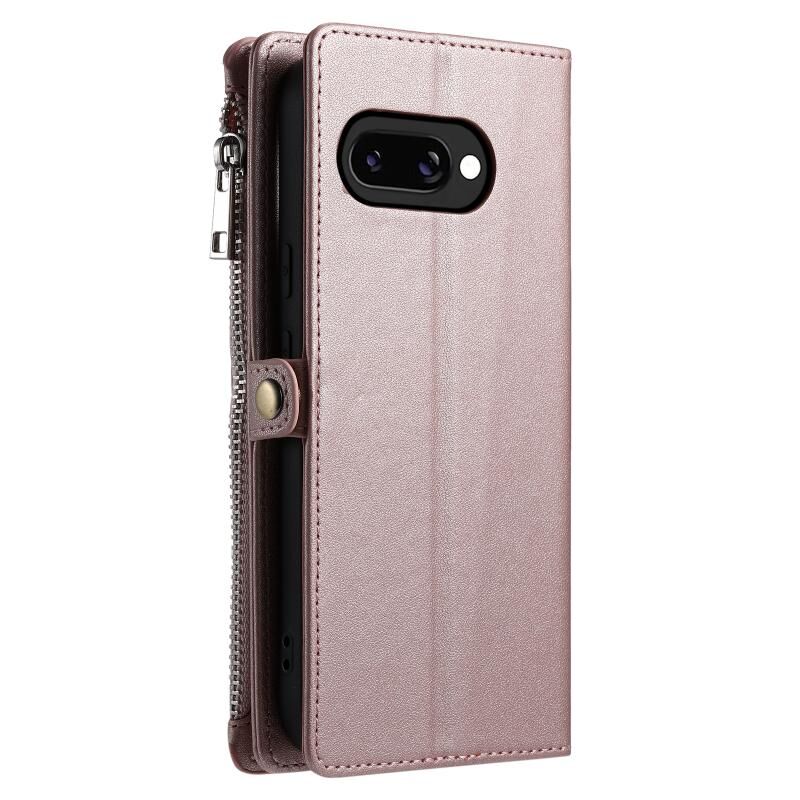 Για το Google Pixel 9a Δερμάτινη ραφή Multi-card Slot φερμουάρ υπόθεση τηλεφώνου (Rose Gold)