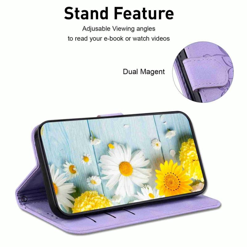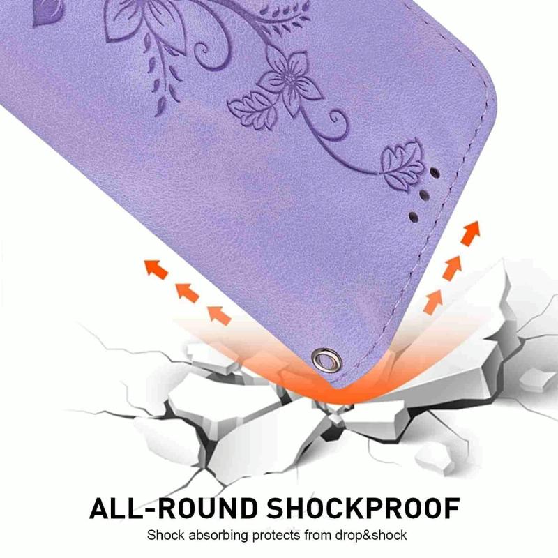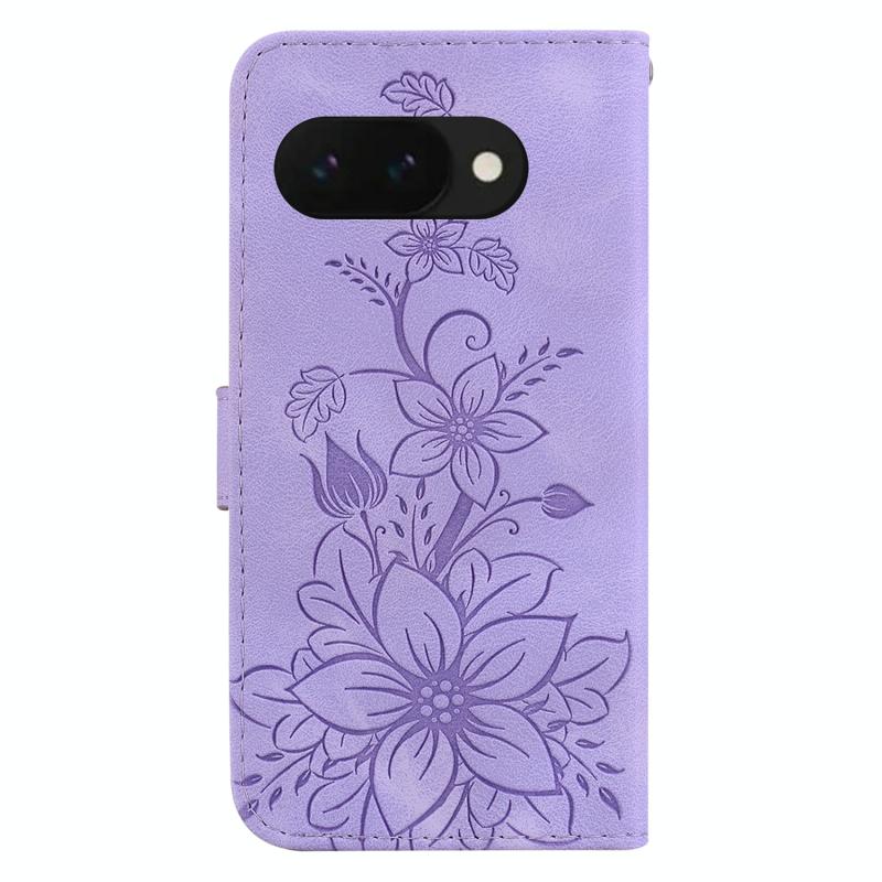 Θήκη τηλεφώνου από δέρμα με ανάγλυφο Lily για Google Pixel 9a (Μωβ)