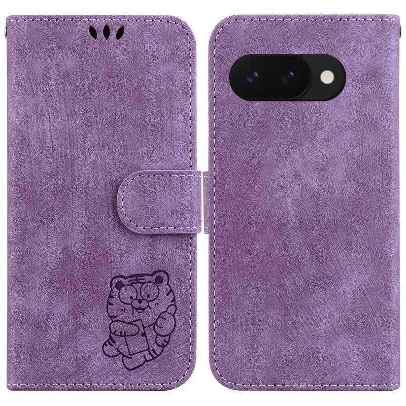 For Google Pixel 9a Little Tiger Embossed Leather Phone Case(Purple)