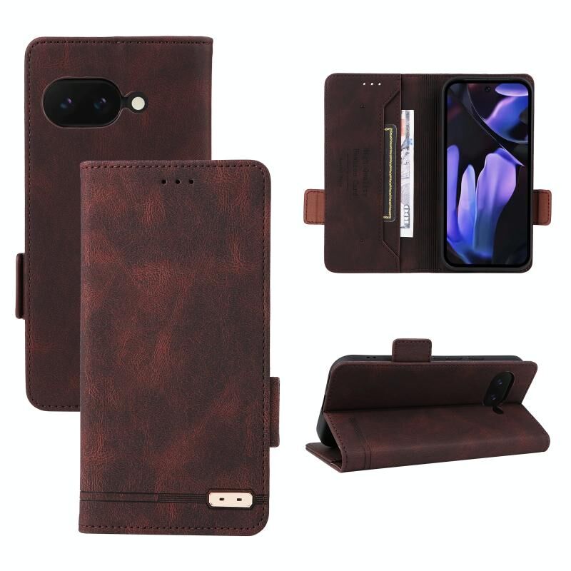 Για το Google Pixel 9a Μαγνητικό κούμπωμα Δερμάτινη θήκη τηλεφώνου(Καφέ)