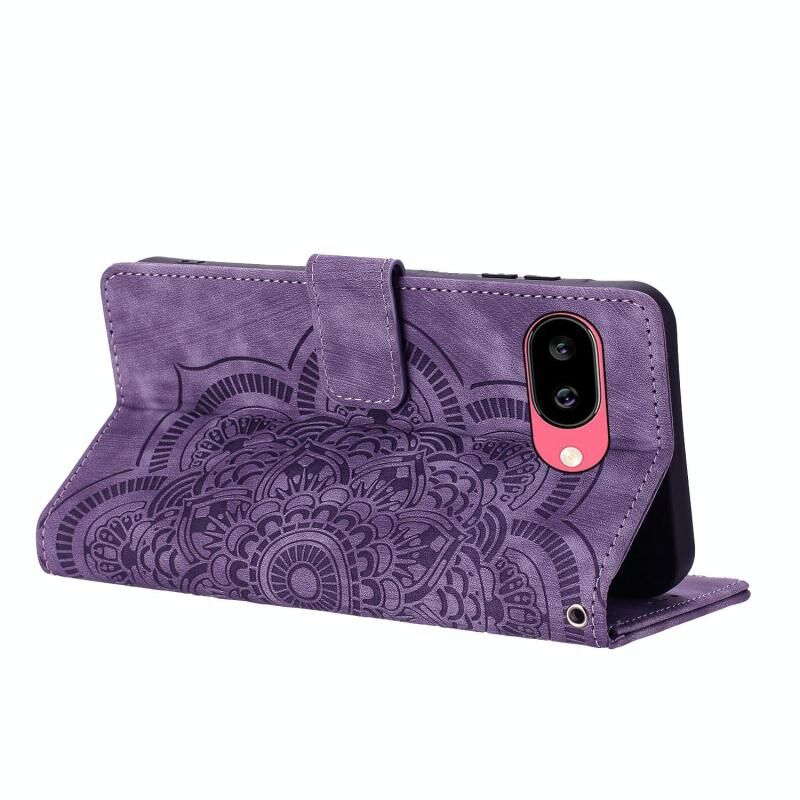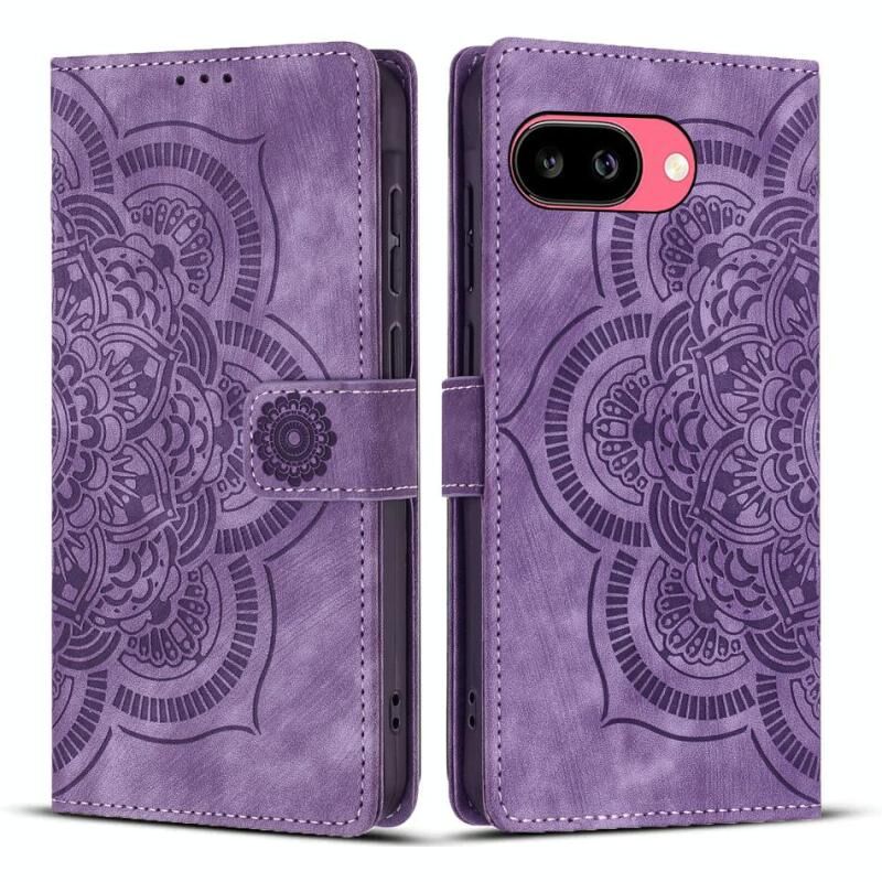 For Google Pixel 9a Mandala Embossed Retro Frosted Leather Phone Case(Purple)