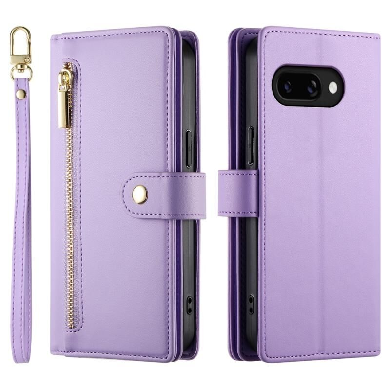 Για το Google Pixel 9a Nine Card-slot φερμουάρ πορτοφόλι τσάντα δερμάτινη θήκη τηλεφώνου (μωβ)