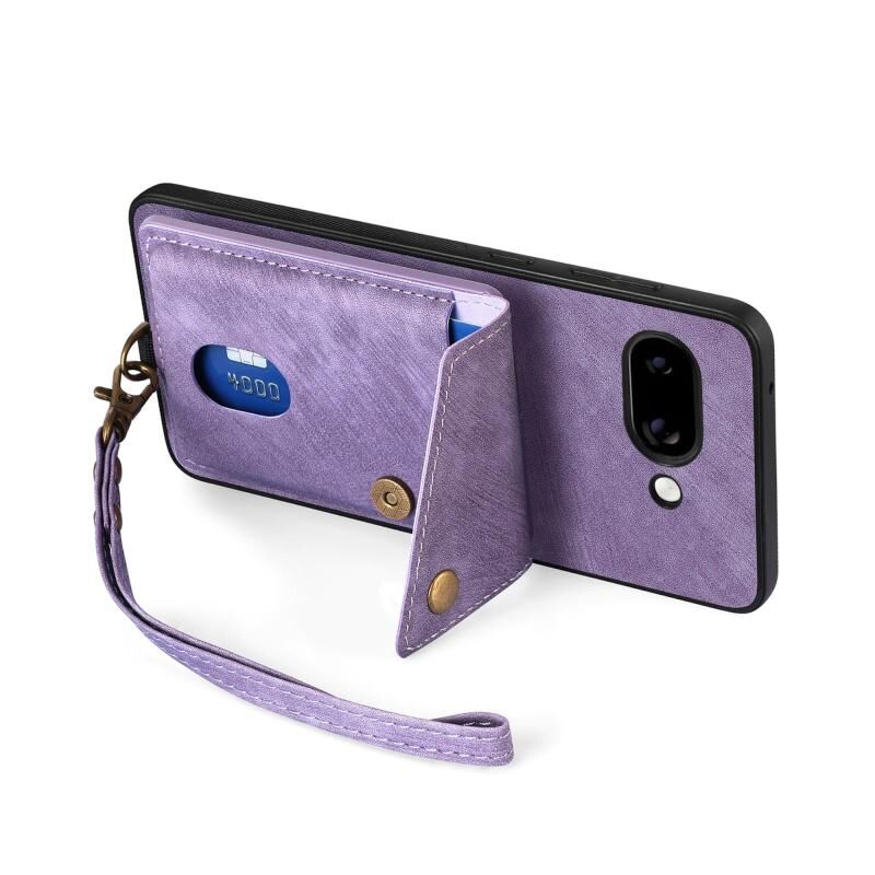 For Google Pixel 9a Retro Card Wallet Fold Leather Phone Case with Strap(Purple)