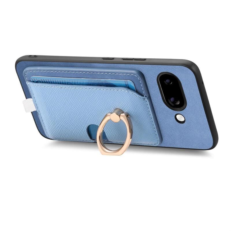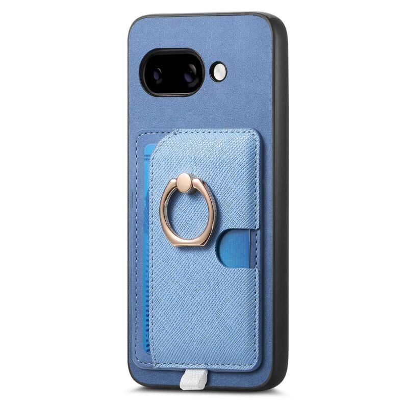 For Google Pixel 9a Retro Cross Leather Ring Side Insert Card Bag MagSafe Phone Case(Blue)