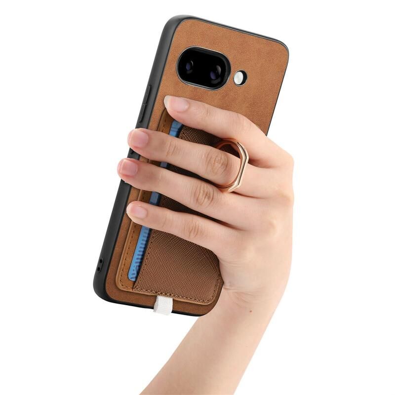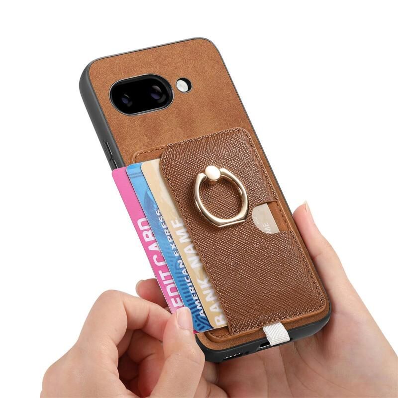 For Google Pixel 9a Retro Cross Leather Ring Side Insert Card Bag MagSafe Phone Case(Brown)