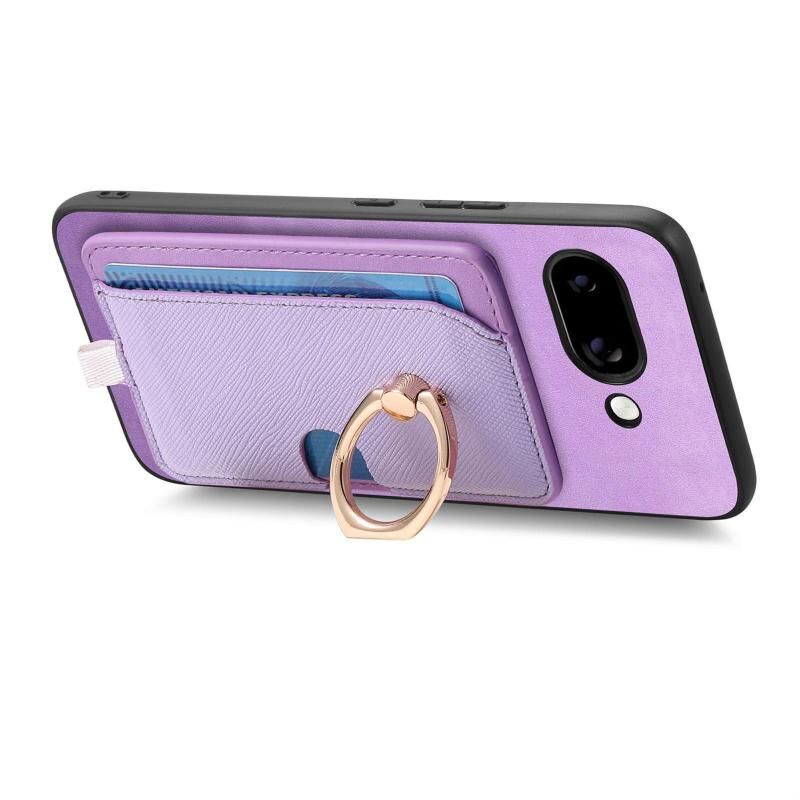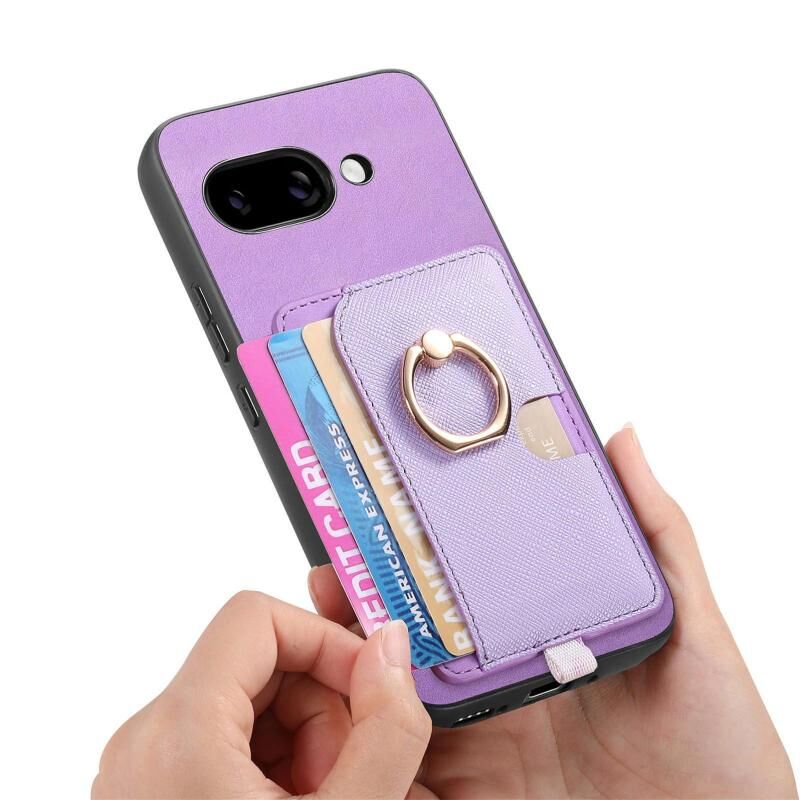 For Google Pixel 9a Retro Cross Leather Ring Side Insert Card Bag MagSafe Phone Case(Purple)