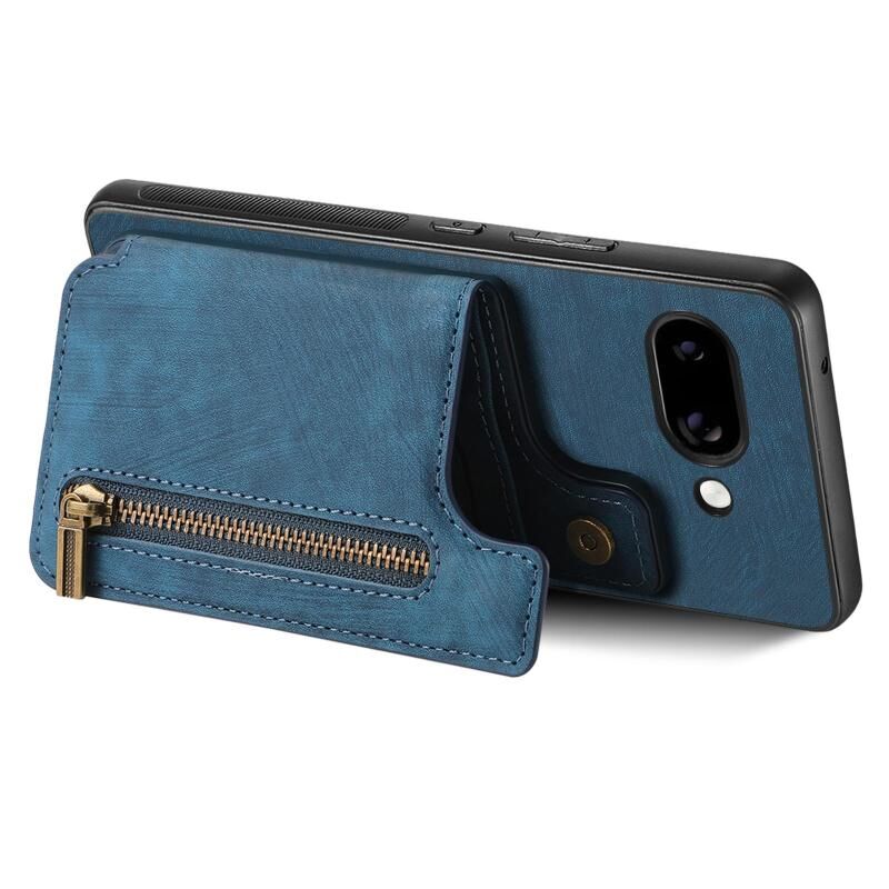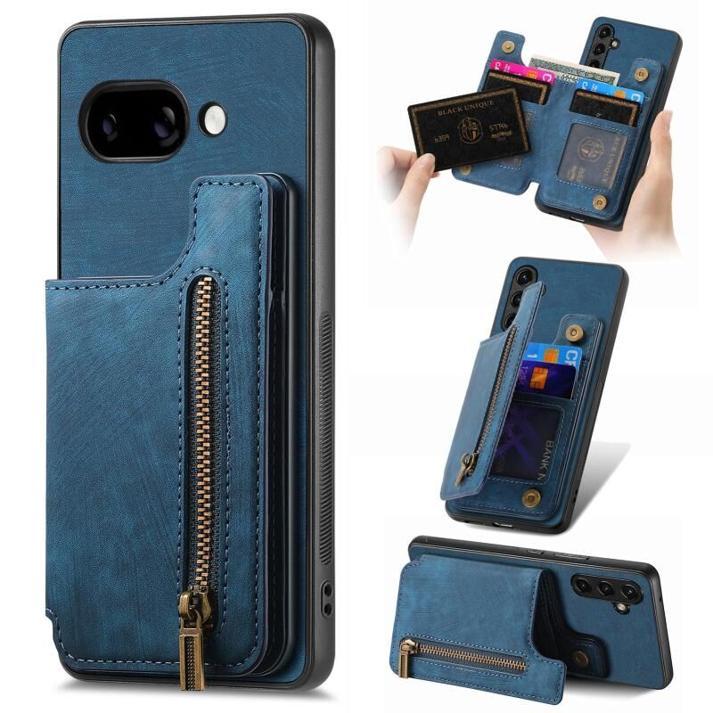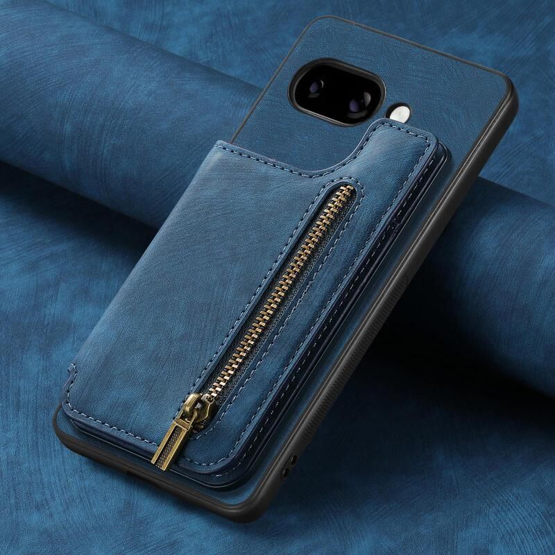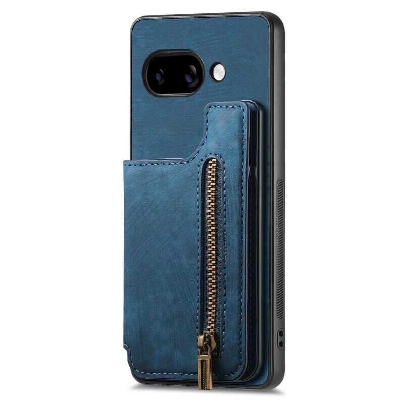 For Google Pixel 9a Retro Leather Zipper Wallet Back Phone Case(Blue)