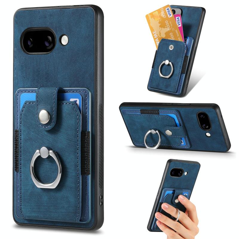 For Google Pixel 9a Retro Skin-feel Ring Card Wallet Phone Case(Blue)