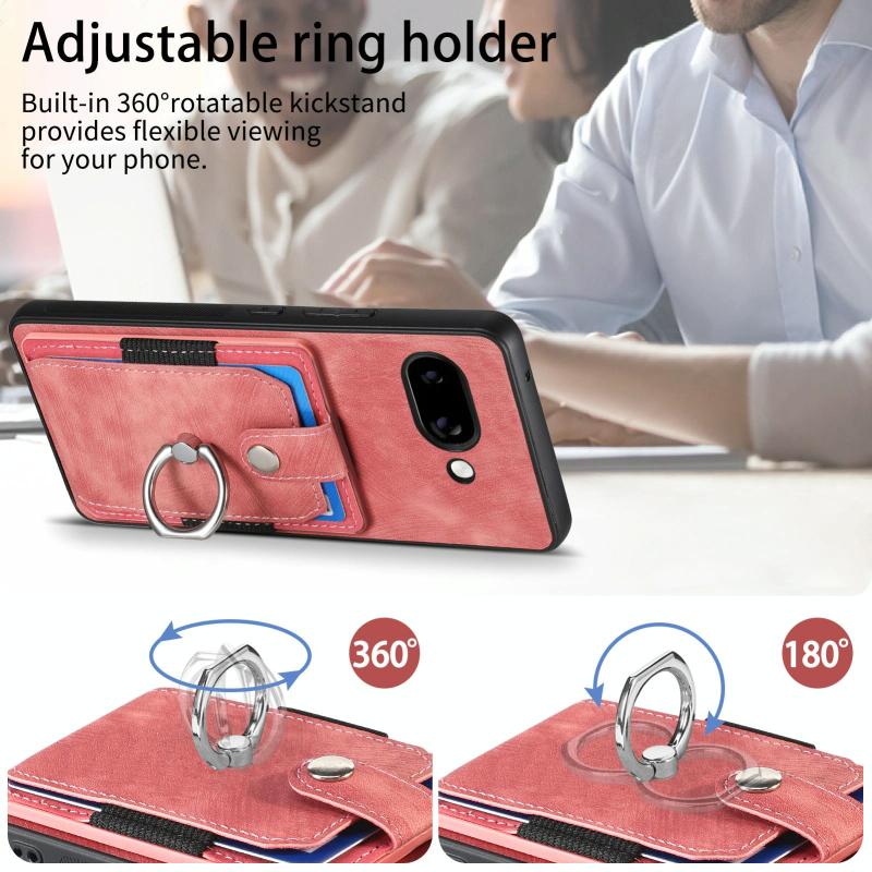 For Google Pixel 9a Retro Skin-feel Ring Card Wallet Phone Case(Pink)