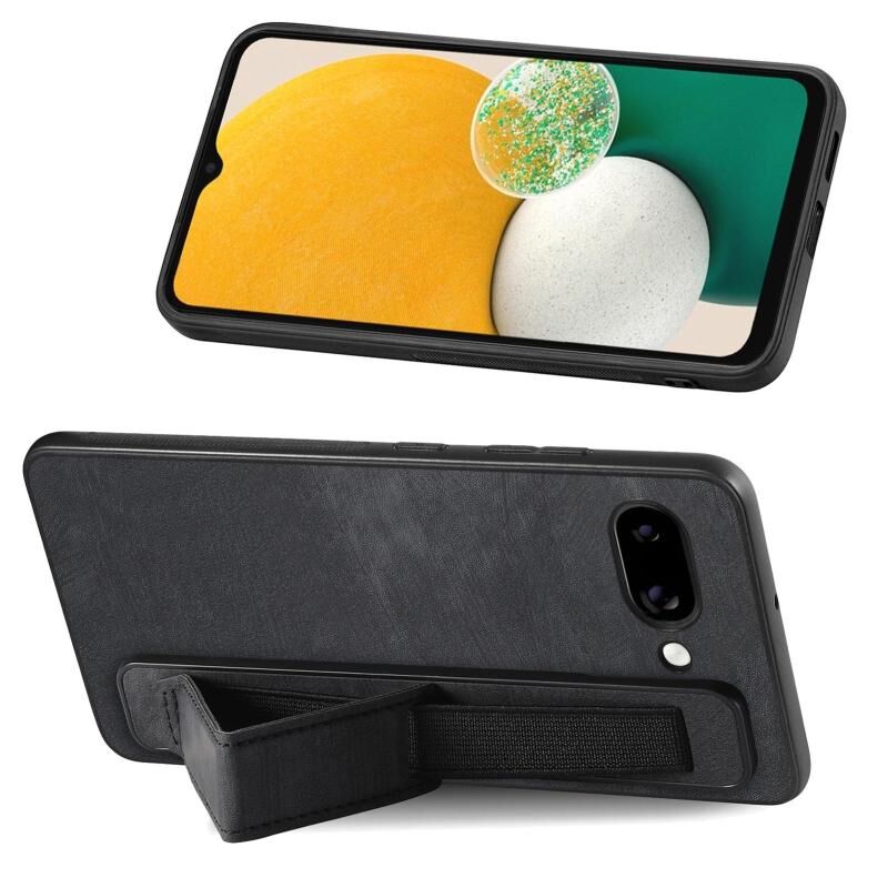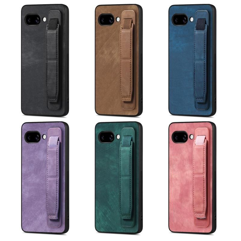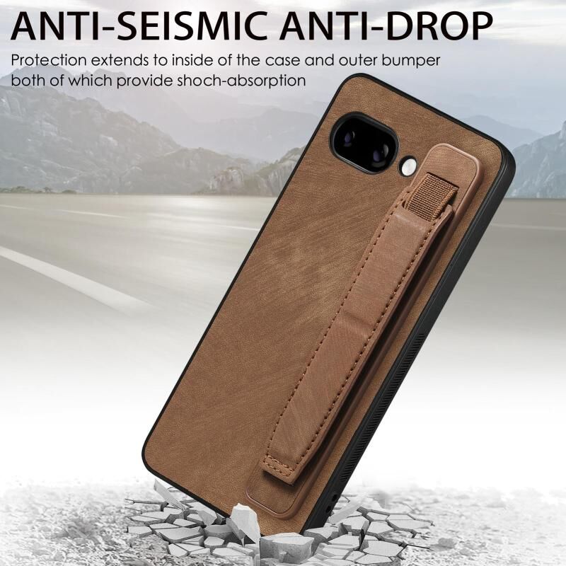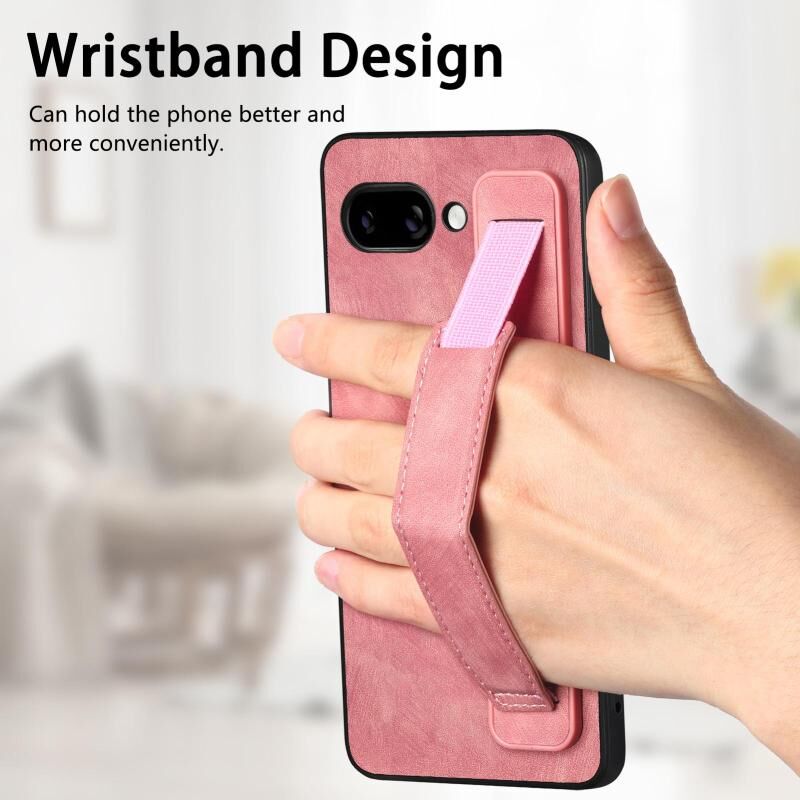 For Google Pixel 9a Retro Wristband Holder Leather Back Phone Case(Black)