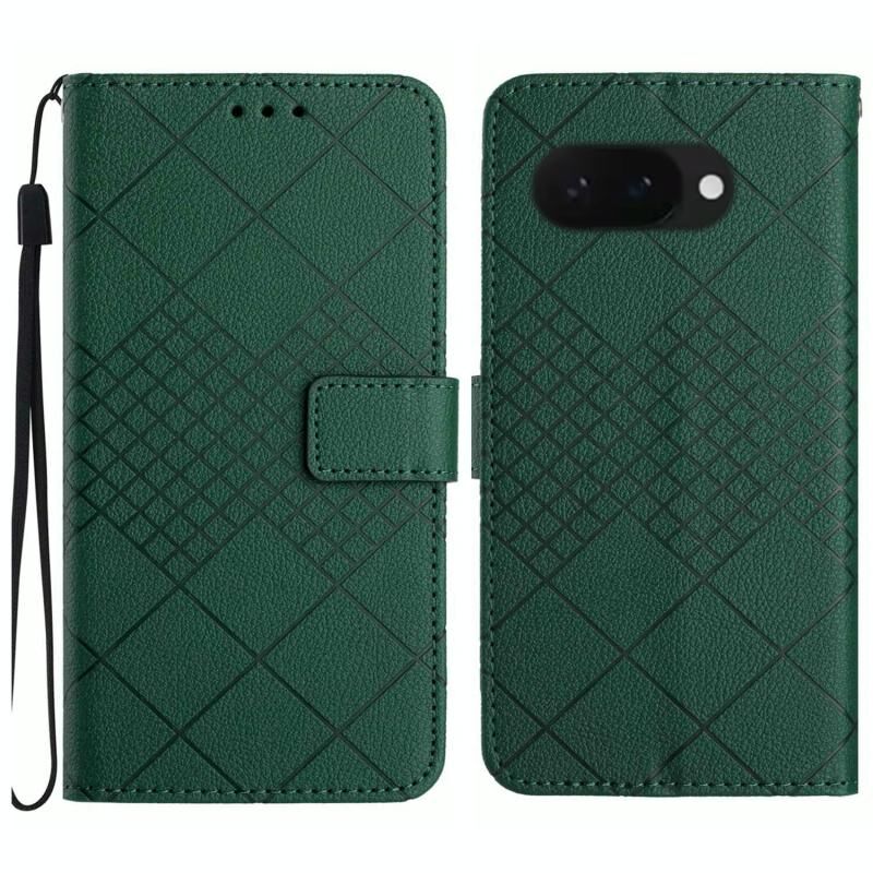 Για το Google Pixel 9a Rhombic Grid Texture Δερμάτινη θήκη τηλεφώνου (πράσινο)