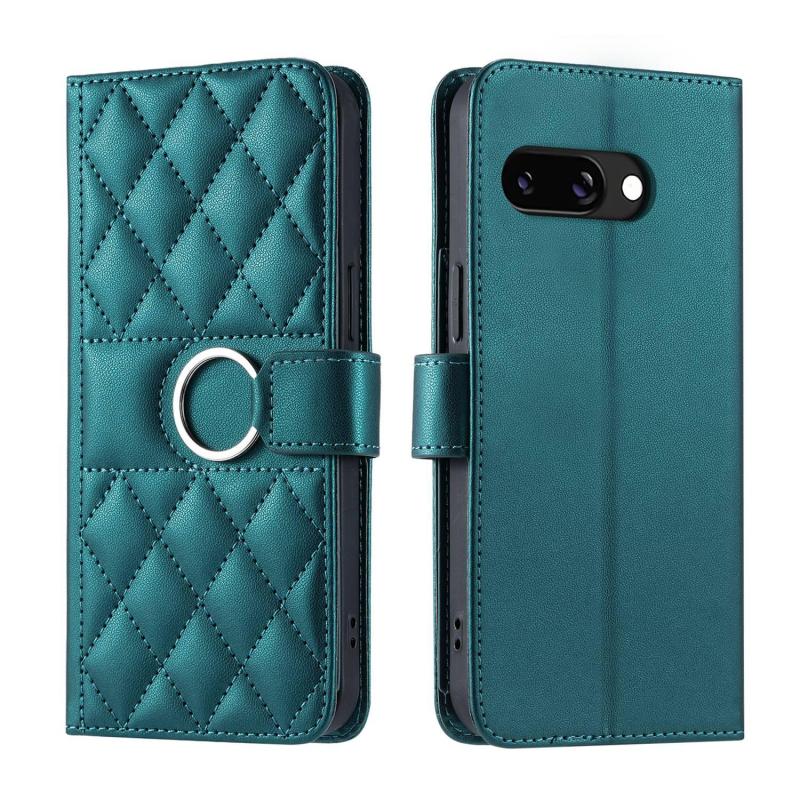 For Google Pixel 9a Ring Buckle Rhombic Leather Phone Case(Green)