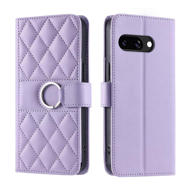 For Google Pixel 9a Ring Buckle Rhombic Leather Phone Case(Purple)