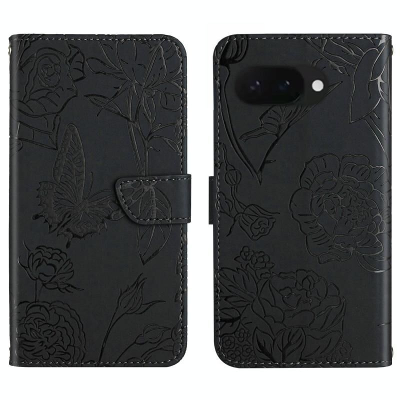Για το Google Pixel 9a Skin Feel Πεταλούδα ανάγλυφο Flip υπόθεση τηλεφώνου δέρμα (Μαύρο)