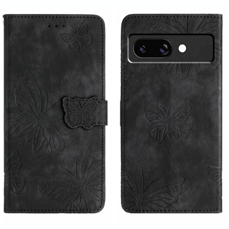Θήκη τηλεφώνου από δέρμα με ανάγλυφο σχέδιο πεταλούδας για Google Pixel 9a (Μαύρο)