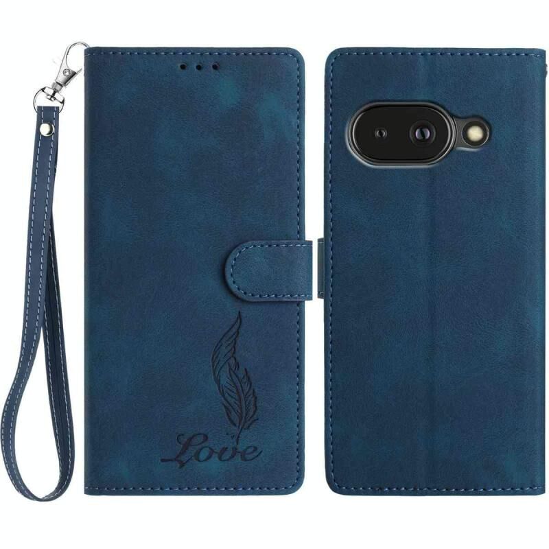 For Google Pixel 9a Skin Feel Embossed Feather Leather Phone Case(Dark Blue)