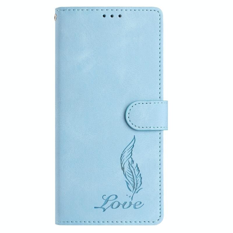 For Google Pixel 9a Skin Feel Embossed Feather Leather Phone Case(Light Blue)