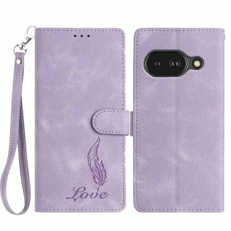 For Google Pixel 9a Skin Feel Embossed Feather Leather Phone Case(Purple)