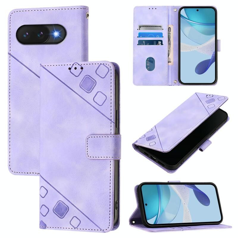 For Google Pixel 9a Skin-feel Embossed Leather Phone Case(Light Purple)