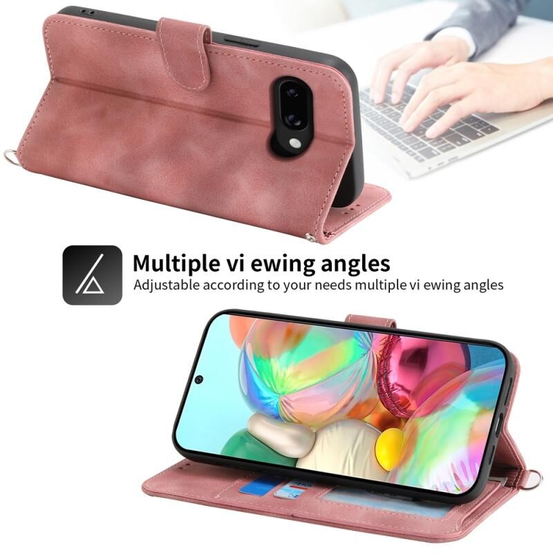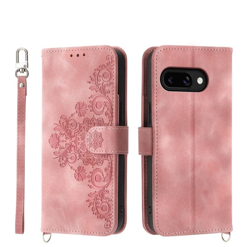 Για Google Pixel 9a Skin-feel λουλούδια ανάγλυφο πορτοφόλι δερμάτινη θήκη τηλεφώνου (ροζ)