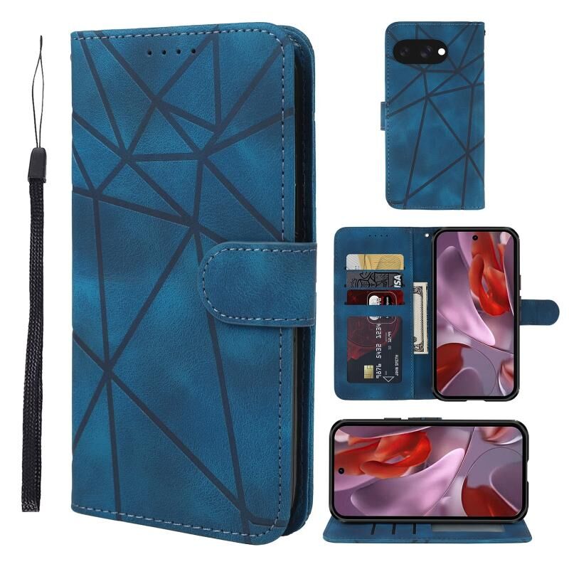 Για το Google Pixel 9a Skin Feel Γεωμετρικές γραμμές δερμάτινη θήκη τηλεφώνου (μπλε)